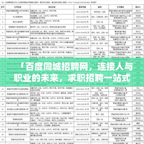 在信息化、智能化的时代背景下,"百度一下同城招聘网"不仅是一个招聘平台,更是连接人与职业的未来,它利用先进的信息技术,打破地域、行业的限制,让求职与招聘更加便捷高效,它还提供丰富的职业规划、求职指导等服务,帮助求职者实现职业梦想,为企业输送优秀人才。
