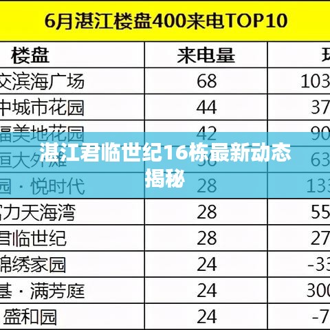 湛江,这座美丽的海滨城市,以其独特的地理位置和快速发展的经济吸引了众多人的目光,而位于城市中心的君临世纪小区,更是成为了人们关注的焦点之一,君临世纪16栋作为小区的重要组成部分,其最新动态更是备受关注,本文将为您详细介绍湛江君临世纪16栋的最新消息。