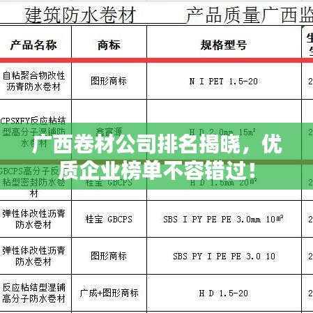 广西,这片繁荣的土地,拥有众多的卷材公司,它们以其卓越的产品质量、良好的信誉和优质的服务赢得了广大客户的信赖,我们将为您揭晓广西卷材公司的排名。
